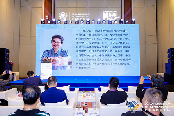 12月2日至5日,2025企业家博鳌论坛系列活动在海南博鳌举办。在4日举行的2025博鳌文化经济发展论坛上,中国艺术研究院篆刻院名誉院长骆芃芃表示,在几十年的篆刻艺术创作当中,一直在不断地归纳、总结、探索与时代审美情趣相符的创作理念。
