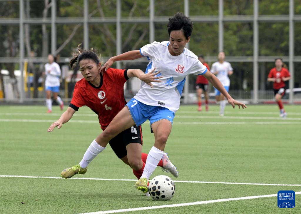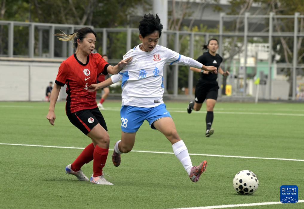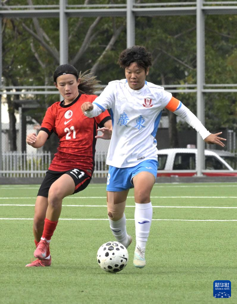 12月28日,广东队球员龙芷柔(右)与香港队球员朱素君在比赛中拼抢。