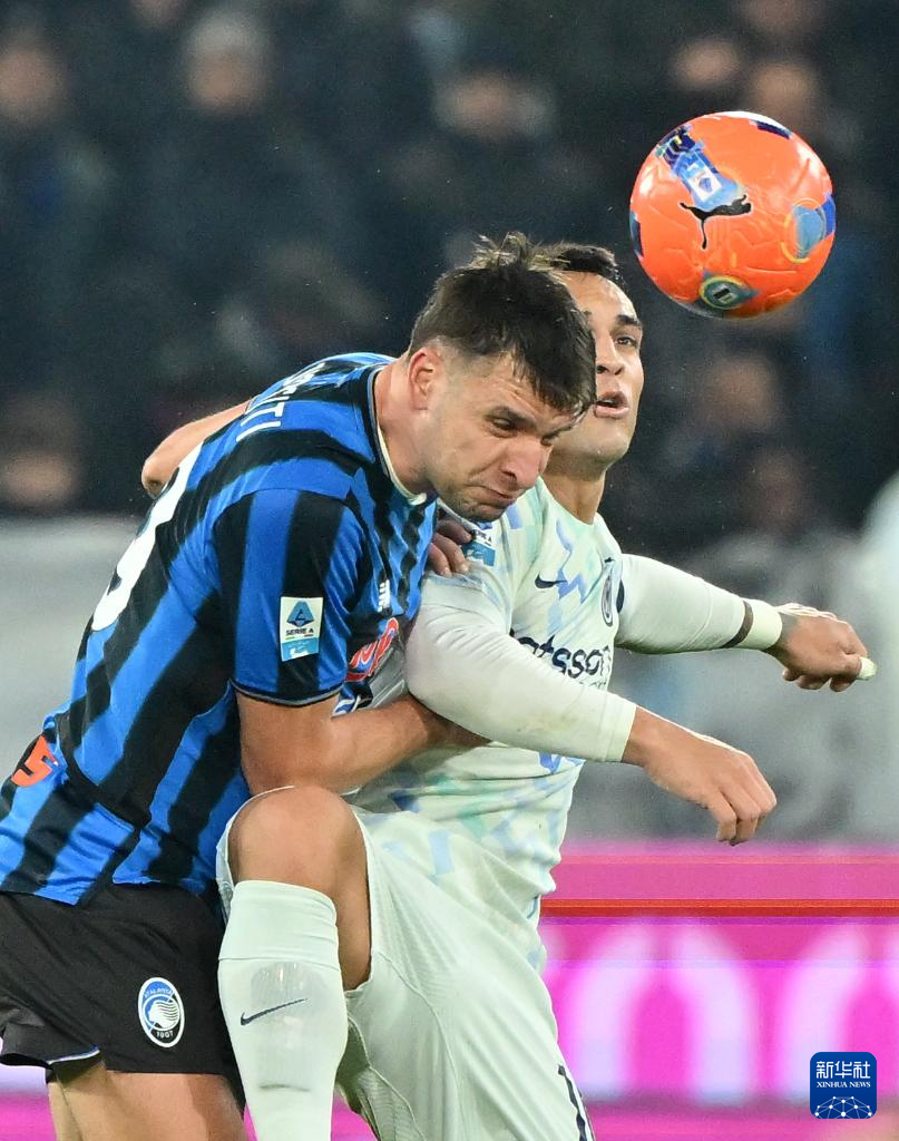 12月28日,亚特兰大队球员吉姆西蒂(左)与国际米兰队球员劳塔罗·马丁内斯在比赛中拼抢。