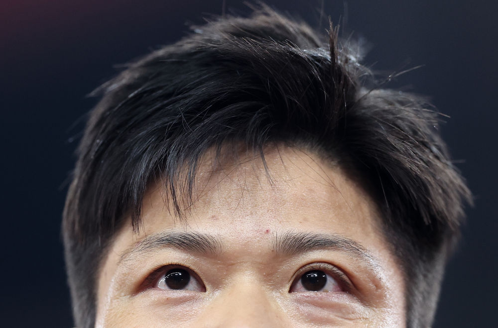 ↑4月23日,新当选的乒协副主席马龙倾听刘国梁发言。