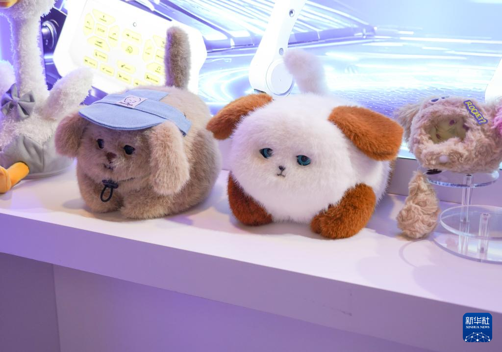 这是10月23日在广东汕头举行的第24届汕头·澄海国际玩具礼品博览会上拍摄的AI毛绒玩具。