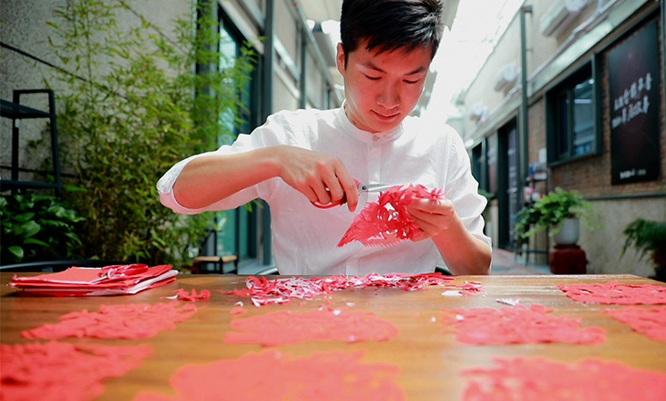 作為一個90后的剪紙傳承人,就要剪一些有新時代特點的剪紙作品。我擅長的是即興創(chuàng)作、脫稿剪紙,速度就是快。我們會了那些傳統(tǒng)的圖案之外,還要能夠看到任何的物體,或者別人給我一個命題就能即時創(chuàng)作。搞剪紙創(chuàng)作一定要豐富自己的知識面,這樣腦海中才會有更多的畫面跟場景。我感覺剪紙是讓我用紙和剪刀在對話,把我的情感通過紙釋放出來。其實是一種靜修,或者自我的享受。我以后要開展的工作,或許是要承擔(dān)著怎樣讓剪紙在00后、10后、20后這些年輕一代的未來人,怎么能認識我們這種傳統(tǒng)藝術(shù),這是我一生要去做的事情。