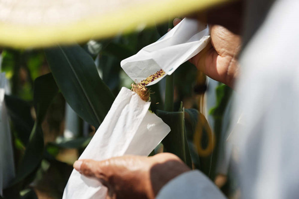 眼下的三亞陽光明媚,春意盎然。晨曦初露,程相文就戴上草帽、穿上白大褂一頭鉆進(jìn)玉米地,領(lǐng)著助手套袋、授粉,觀察葉片、根系長(zhǎng)勢(shì)并詳細(xì)記錄,在地里一待就是五六個(gè)小時(shí)。常年高溫暴曬,程相文皮膚黝黑,摘下眼鏡后就像個(gè)農(nóng)家老漢。