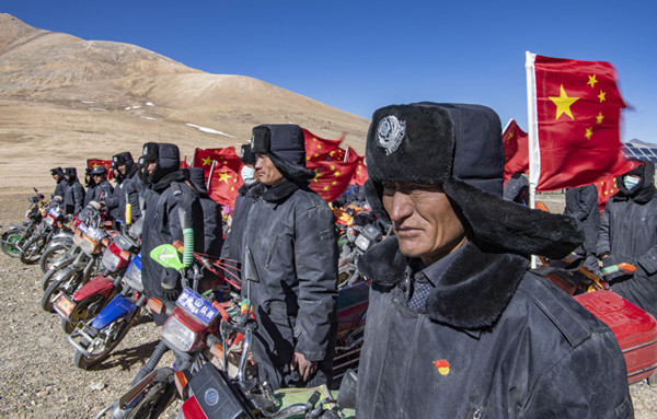 “小時候放牧,一些陌生人會突然闖到帳篷里?!?2歲的隊員尼瑪記得,那時,那些人會要吃的,要用的,然后就沖著邊境線上的山口而去。牧民們只能縮在帳篷一角,不敢作聲。
