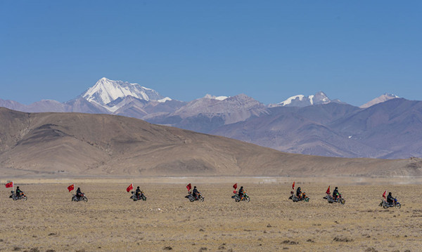 和高原的許多牧民一樣,石覺塔布是個“騎士”。從前,他騎馬放牧;現(xiàn)在,他騎摩托車守邊。作為昌果邊境派出所摩托車巡邏隊的隊長,這天,他要帶隊進(jìn)行邊境巡防訓(xùn)練。