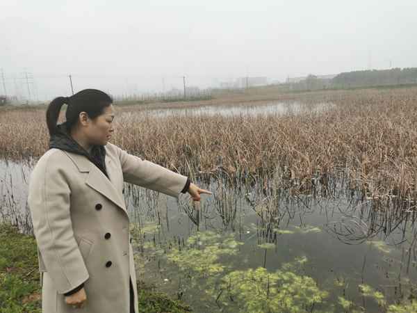 ↑在大房郢水庫邊,鳳陽小崗村水源地環(huán)??萍加邢薰矩?fù)責(zé)人宋進(jìn)介紹種植的沉水植物。新華社記者 姜剛 攝