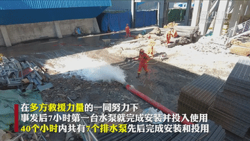 應(yīng)急、消防、電力、衛(wèi)健等多部門人員正緊張有序開展工作。在多方救援力量的一同努力下,事發(fā)后7小時,第一臺水泵就完成安裝并投入使用。40個小時內(nèi),發(fā)生事故煤礦共有7個排水泵先后完成安裝和投用。