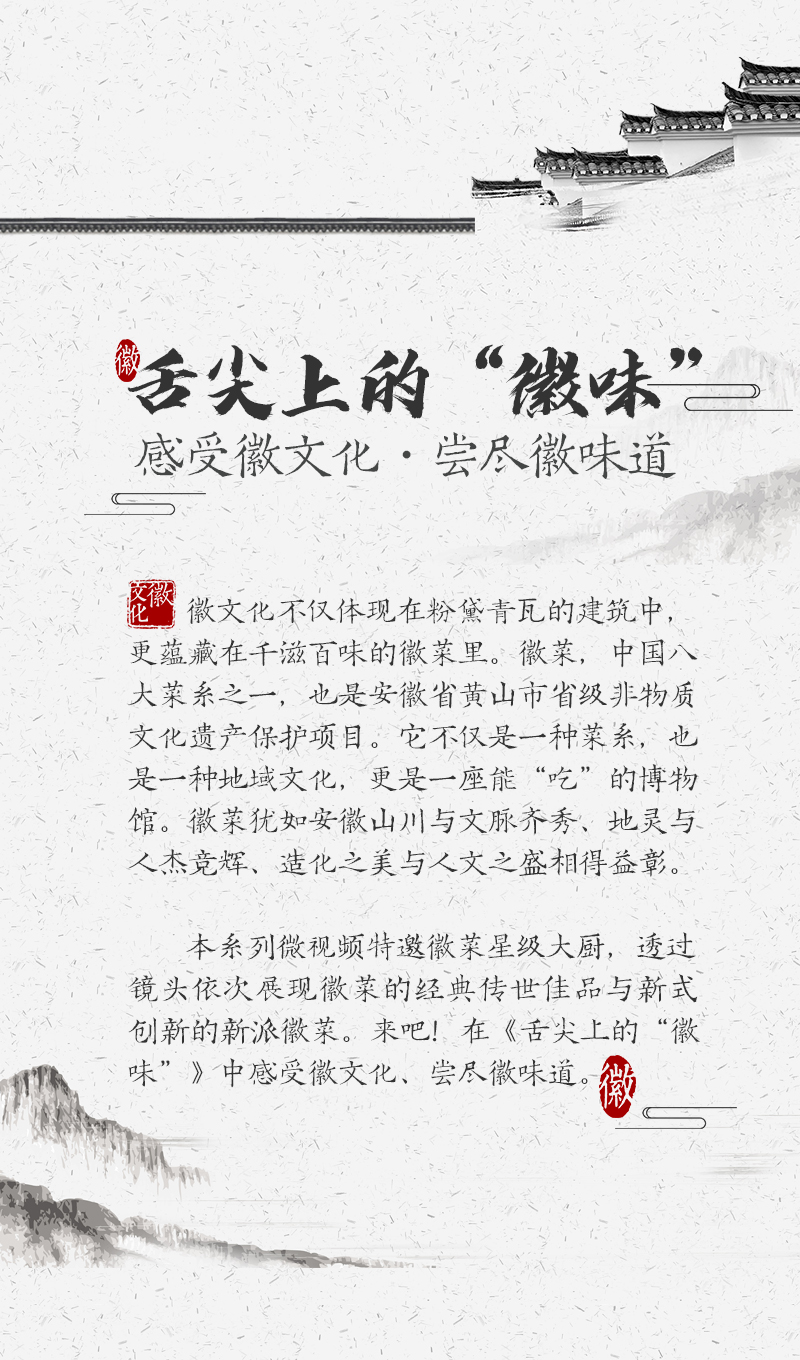 ????? ??徽州毛豆腐是徽州地區(qū)的傳統(tǒng)名菜,是表面長有寸許白色茸毛的霉制品。地處安徽南部的徽州地區(qū),獨特的地理環(huán)境和溫潤的氣候條件,孕育出了毛豆腐這種地域美食。