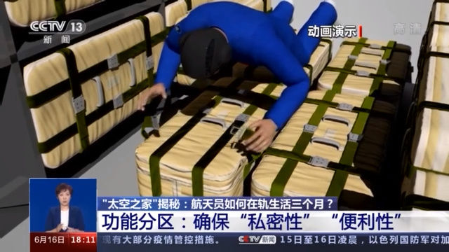 據了解,生活區(qū)內有獨立的睡眠區(qū)、衛(wèi)生區(qū)、鍛煉區(qū),還配有太空廚房、就餐區(qū)和睡眠區(qū)。