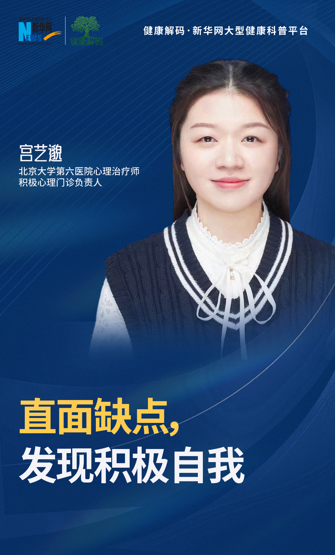 本集《健康解码·心理健康系列》邀请了北京大学第六医院心理治疗师、积极心理门诊负责人宫艺邈分享《直面缺点 发现积极自我》。