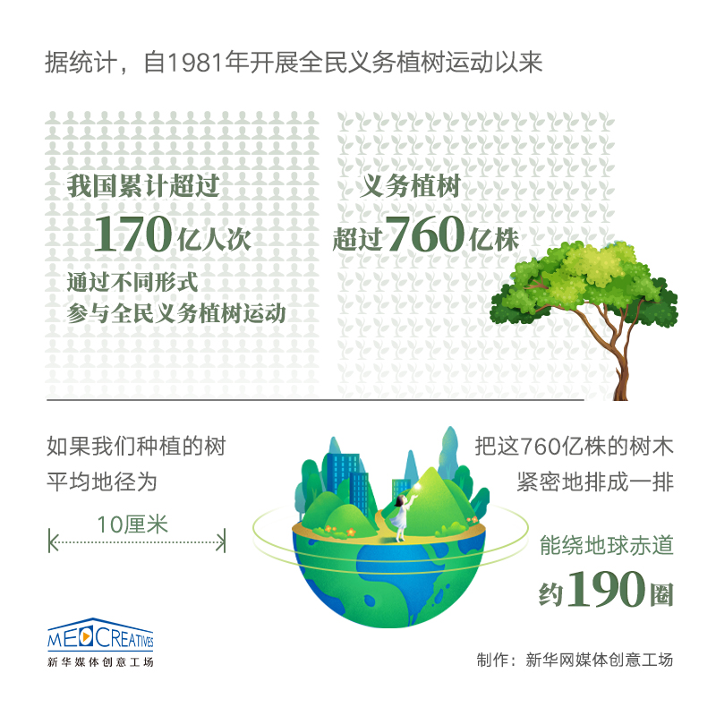 1981年,第五屆全國(guó)人民代表大會(huì)第四次會(huì)議通過《關(guān)于開展全民義務(wù)植樹運(yùn)動(dòng)的決議》。至此,植樹造林、綠化祖國(guó)成為中國(guó)每一位適齡公民的法定義務(wù),一代代中華兒女熱情參與到綠化祖國(guó)的浪潮中,義務(wù)植樹運(yùn)動(dòng)從此在神州大地蓬勃開展起來。每到植樹時(shí)節(jié),從城市到鄉(xiāng)村、從機(jī)關(guān)到工廠、從部隊(duì)到學(xué)校、從內(nèi)地到邊疆,全國(guó)各族人民揮鍬揚(yáng)鋤,造林綠化的浪潮一浪高過一浪。