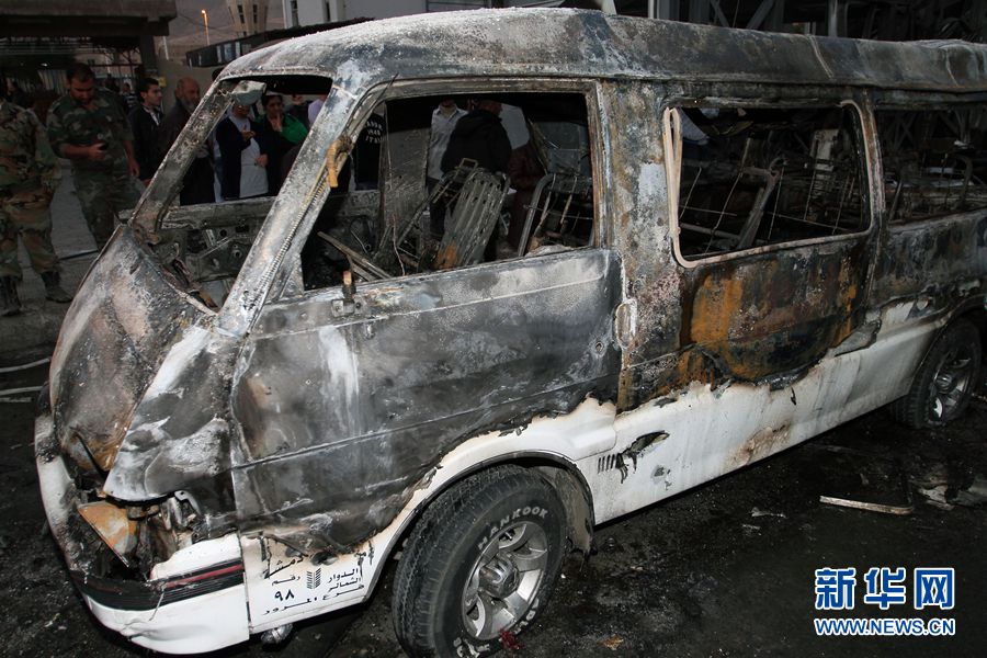 ?。玻度障挛纾诖篑R士革西南部蘇瑪利亞區(qū)的一個(gè)汽車站附近,一名自殺式爆炸襲擊者引爆了一輛裝有爆炸裝置的汽車,造成至少15人死亡,35人受傷,傷者中包括兒童,一些傷者傷勢(shì)嚴(yán)重。爆炸現(xiàn)場(chǎng)的多輛汽車被完全炸毀,周圍的建筑也遭到不同程度的破壞。