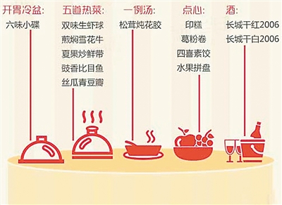 歡迎晚宴上共出現(xiàn)一個(gè)冷盤、五道熱菜,此外還有點(diǎn)心、水果、甜品等。蘇德興介紹,其中冷盤的食材基本都是上海本地原產(chǎn),烹飪用油來自婺源高山上自然生長的山茶,口味則凸顯江南的地方特色。上海市食品藥品監(jiān)督管理局更進(jìn)一步透露,國宴的原材料“沒有特供,全是從超市買的”。