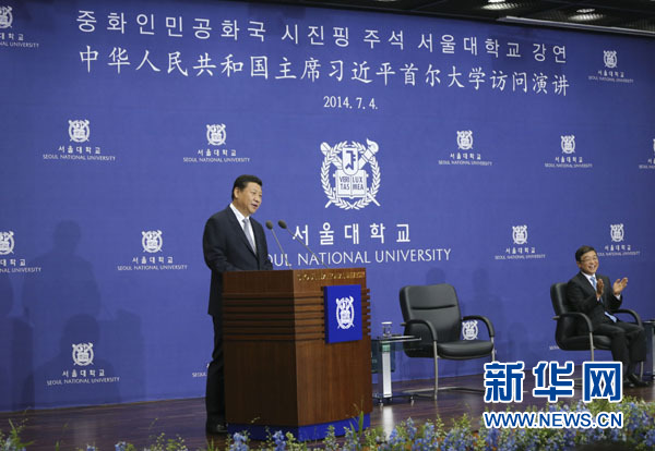 ????7月4日,國(guó)家主席習(xí)近平在韓國(guó)國(guó)立首爾大學(xué)發(fā)表題為《共創(chuàng)中韓合作未來 同襄亞洲振興繁榮》的重要演講。 新華社記者 蘭紅光 攝