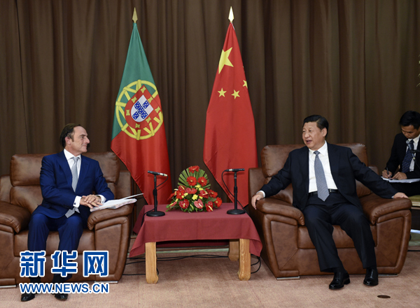 ????習(xí)近平請(qǐng)波塔斯轉(zhuǎn)達(dá)對(duì)席爾瓦總統(tǒng)的問候,對(duì)波塔斯受席爾瓦總統(tǒng)委托,專程從首都里斯本前來接待中國代表團(tuán)過境經(jīng)停表示感謝。習(xí)近平指出,兩個(gè)月前,席爾瓦總統(tǒng)訪華,我同他進(jìn)行了很好的會(huì)談,為中葡全面戰(zhàn)略伙伴關(guān)系增添了新動(dòng)力。葡萄牙是中國在歐盟的好朋友、好伙伴。中方始終高度重視中葡關(guān)系。明年是兩國建立全面戰(zhàn)略伙伴關(guān)系10周年,希望雙方以此為契機(jī),深化經(jīng)貿(mào)、技術(shù)、投資、農(nóng)牧業(yè)、旅游、海洋等領(lǐng)域務(wù)實(shí)合作,推動(dòng)中葡關(guān)系再上新臺(tái)階。中方祝愿葡萄牙繼續(xù)保持經(jīng)濟(jì)復(fù)蘇勢頭,鼓勵(lì)更多有實(shí)力的中國企業(yè)赴葡萄牙投資,希望葡方為兩國企業(yè)和人員交往提供更多便利。中葡都擁有較長海岸線和豐富海洋資源,雙方可以在發(fā)展海洋經(jīng)濟(jì)、利用海洋資源方面加強(qiáng)合作。