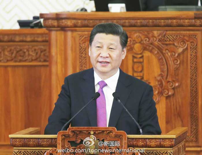 ???? 新華網北京8月22日電 據新華社“新國際”微博報道,習近平主席22日在蒙古國國家大呼拉爾發(fā)表演講時說,中國愿意為周邊國家提供共同發(fā)展的機遇和空間,歡迎大家搭乘中國發(fā)展的列車,搭快車也好,搭便車也好,我們都歡迎。(新華社記者鞠鵬攝)?