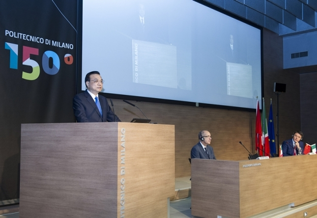 克強(qiáng)總理的到來受到了米蘭理工大學(xué)師生的熱烈歡迎,大家揮舞著手中的兩國國旗,歡呼著迎接克強(qiáng)總理的到來,不少學(xué)生紛紛拿出手機(jī)拍照。除了米蘭理工大學(xué)的師生,參加今天活動(dòng)的還有不少中意兩國創(chuàng)新行業(yè)的企業(yè)家。