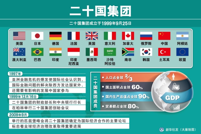 ?。牵玻暗漠a(chǎn)生與發(fā)展,與金融危機(jī)密不可分。1997年的亞洲金融風(fēng)暴,使七國集團(tuán)認(rèn)識(shí)到與新興經(jīng)濟(jì)體加強(qiáng)對(duì)話的重要性,并在兩年后倡議成立了這一組織,但在當(dāng)時(shí)只限于財(cái)長和央行行長的非正式論壇。在2008年國際金融危機(jī)爆發(fā)后,此對(duì)話機(jī)制迅速升級(jí)為領(lǐng)導(dǎo)人的峰會(huì),以加強(qiáng)各國的宏觀政策協(xié)調(diào),應(yīng)對(duì)全球性的金融危機(jī)。