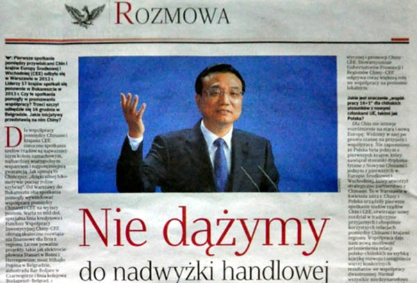 波蘭《共和國(guó)報(bào)》刊登對(duì)李克強(qiáng)聯(lián)合書面采訪稿件