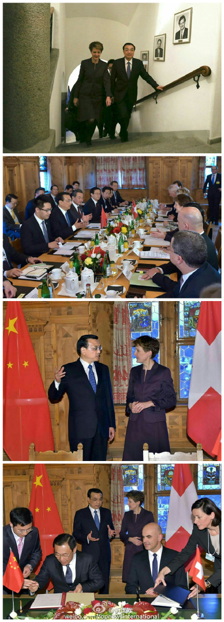 ??? 新華網(wǎng)北京1月22日電 據(jù)新華社“新國際”微博報道,當?shù)貢r間21日下午,國務院總理李克強同瑞士聯(lián)邦主席索瑪魯加舉行會談。李克強說,中方歡迎瑞方參與人民幣國際化進程,支持蘇黎世人民幣離岸市場建設,愿給予瑞士500億元人民幣的合格境外投資者配額,希望瑞方為中資銀行在瑞開設分行提供便利。