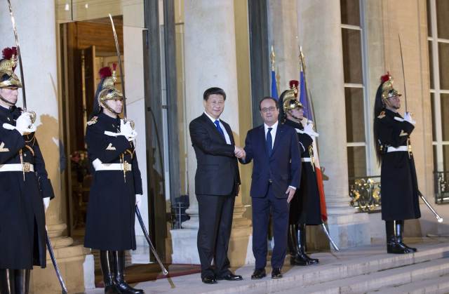 習(xí)主席29日下午抵達(dá)巴黎時(shí),受到法方熱情接待。奧朗德總統(tǒng)作為東道國(guó)領(lǐng)導(dǎo)人,面對(duì)千頭萬緒的工作,仍專門安排時(shí)間,與習(xí)主席單獨(dú)會(huì)見并共進(jìn)晚餐。可要知道,法方所面對(duì)的是150多位各國(guó)元首和政府首腦,奧朗德單獨(dú)同習(xí)主席共進(jìn)晚餐,重視程度可見一斑。