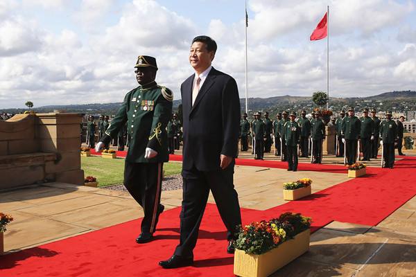 2013年3月26日,南非總統(tǒng)祖馬在比勒陀利亞聯(lián)邦大廈前廣場舉行儀式,歡迎中國國家主席習(xí)近平訪問南非。( 新華社記者蘭紅光攝)