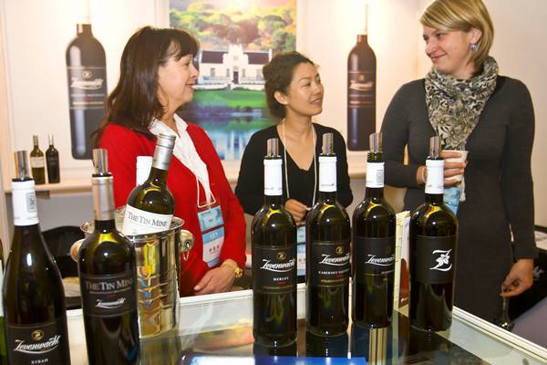 2011年11月24日,參觀者在北京展覽館舉行的南非商品展上了解南非葡萄酒。(新華社記者趙冰攝)