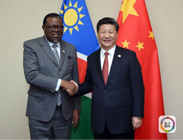 12月4日,國家主席習近平在約翰內斯堡會見納米比亞總統(tǒng)根哥布。(新華社記者張鐸攝)