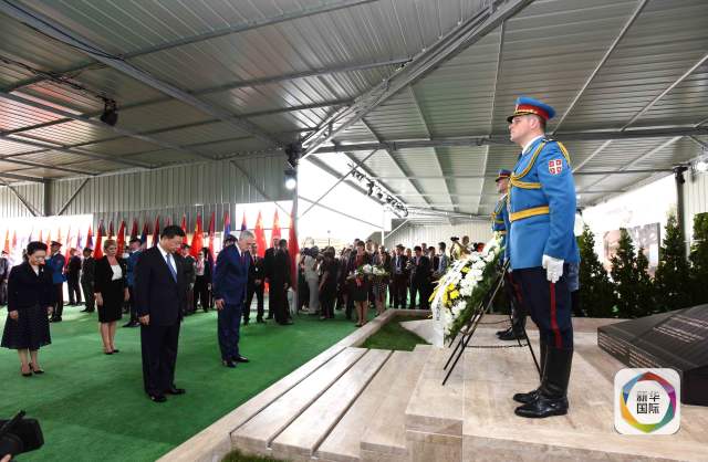 舊址上,又立起一塊新的黑色紀(jì)念碑,“緬懷烈士 珍愛和平”8個(gè)字莊嚴(yán)肅穆,落款“中華人民共和國2016年6月17日立”。紀(jì)念碑前,習(xí)主席肅立默哀,塞爾維亞總統(tǒng)、議長、總理及全體內(nèi)閣成員參加憑吊。
