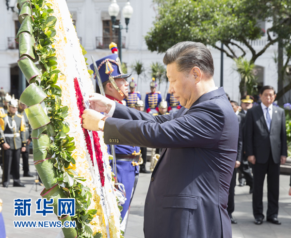 同日,習(xí)近平向厄瓜多爾獨立英雄紀(jì)念碑敬獻(xiàn)花圈。
