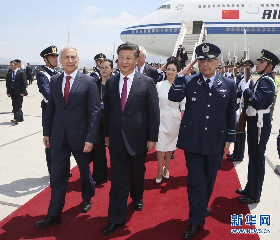 習(xí)近平抵達圣地亞哥對智利共和國進行國事訪問