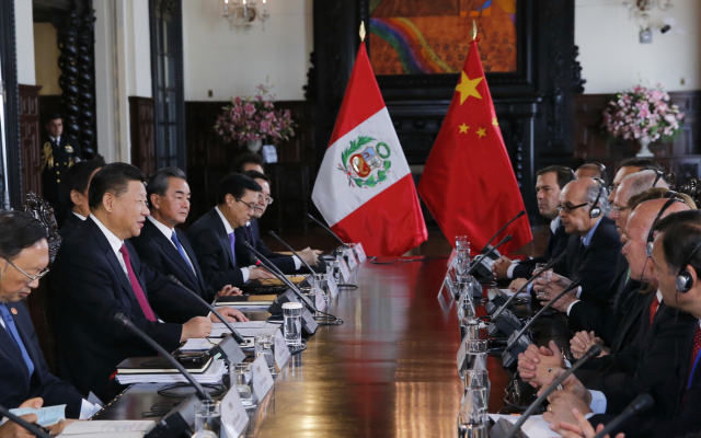 11月21日,國家主席習(xí)近平在利馬同秘魯總統(tǒng)庫琴斯基舉行會談。(新華社記者 鞠鵬 攝)