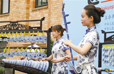 ??? 7月5日,“感知中國·匠心冶陶”景德鎮(zhèn)陶瓷文化展在柏林開幕,中方向德國觀眾奉獻(xiàn)了一場精彩的瓷樂表演。記者 管克江攝