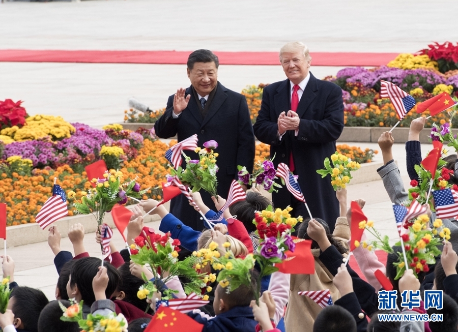 11月9日,國(guó)家主席習(xí)近平在北京人民大會(huì)堂東門外廣場(chǎng)舉行歡迎儀式,歡迎美利堅(jiān)合眾國(guó)總統(tǒng)唐納德·特朗普對(duì)中國(guó)進(jìn)行國(guó)事訪問(wèn)。 新華社記者李學(xué)仁 攝