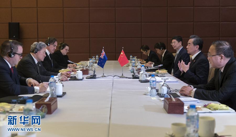 11月11日,外交部長王毅在越南峴港應(yīng)約會見新西蘭副總理兼外長彼得斯。 新華社記者 費茂華 攝