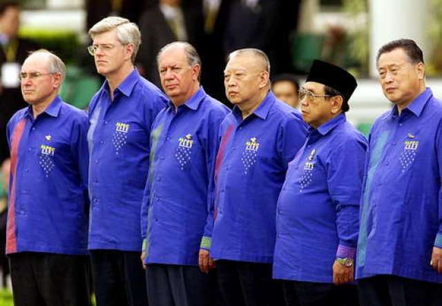 1993年,首屆APEC領(lǐng)導(dǎo)人非正式會(huì)議在美國(guó)西雅圖召開。各經(jīng)濟(jì)體領(lǐng)導(dǎo)人不帶助手和隨身翻譯,不穿正裝。從那以后,在一年一度的APEC領(lǐng)導(dǎo)人非正式會(huì)議期間,東道主通常會(huì)為與會(huì)領(lǐng)導(dǎo)人提供特別制作的當(dāng)?shù)貍鹘y(tǒng)服裝,在宣介東道主傳統(tǒng)文化的同時(shí),也體現(xiàn)“亞太大家庭”的理念。