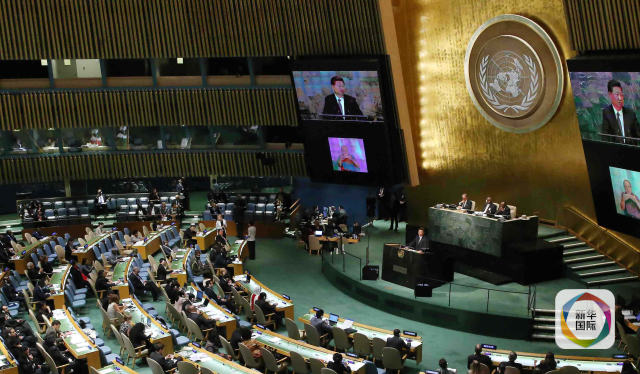 2015年9月28日,國家主席習近平在紐約聯(lián)合國總部出席第70屆聯(lián)合國大會一般性辯論并發(fā)表題為《攜手構(gòu)建合作共贏新伙伴 同心打造人類命運共同體》的重要講話。新華社記者龐興雷攝