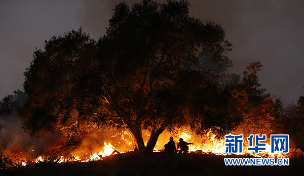 12月11日,在美國加利福尼亞州卡平特里亞,消防員在山火現(xiàn)場工作。新華社記者李穎攝