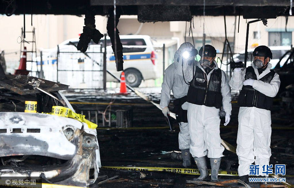 當?shù)貢r間2017年12月23日,火災現(xiàn)場。21日發(fā)生在韓國忠清北道堤川市一運動中心的火災已造成29人,