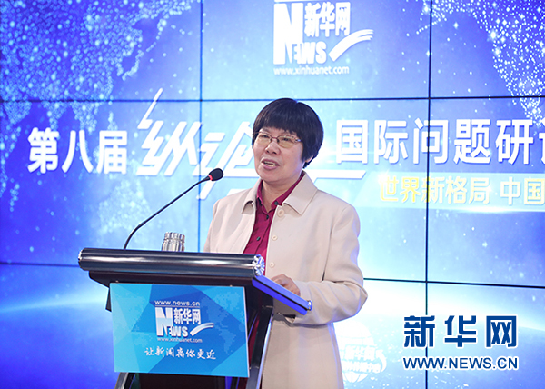 新華網(wǎng)第八屆“縱論天下”國(guó)際問(wèn)題研討會(huì)近日成功舉行。圖為中國(guó)現(xiàn)代國(guó)際關(guān)系研究院研究員陳鳳英在發(fā)表主旨演講。新華網(wǎng)發(fā) 郭小天攝