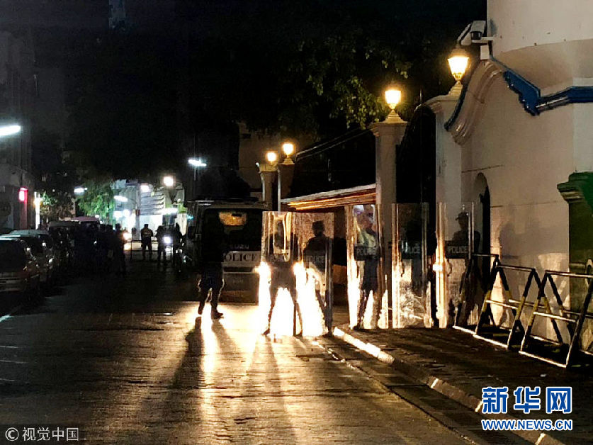 當(dāng)?shù)貢r(shí)間2月5日,馬爾代夫馬累,安全部隊(duì)駐守在最高法院外。馬爾代夫法律事務(wù)部長沙庫爾5日晚通過國家電視臺(tái)宣布,馬爾代夫總統(tǒng)亞明已正式發(fā)布命令,從當(dāng)天開始全國實(shí)行為期15天的緊急狀態(tài)。(圖片來源:視覺中國)