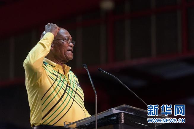 2月14日,南非總統(tǒng)雅各布·祖馬發(fā)表全國講話時(shí)宣布辭職。這是祖馬在南非約翰內(nèi)斯堡舉行的非洲人國民大會(huì)(非國大)第54屆全國代表大會(huì)上發(fā)言的資料照片(2017年12月16日攝)。新華社發(fā)(戴維·奈克爾攝)