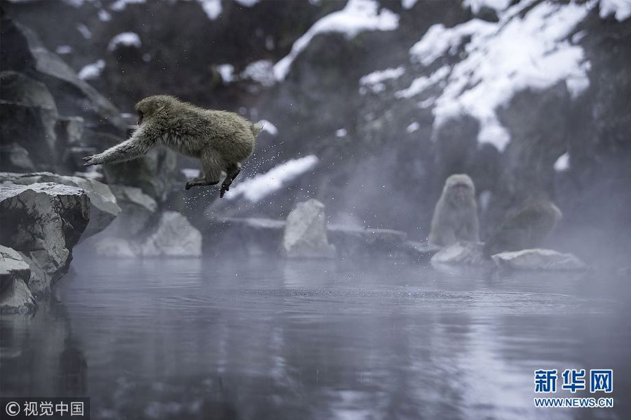 2018年2月18日訊(具體拍攝時(shí)間不詳),日本長(zhǎng)野縣地獄谷,活潑的猴子在溫泉中跳進(jìn)跳出,嬉戲休息。地獄谷野猿公苑地處長(zhǎng)野縣的志賀高原,由于這里的噴泉不斷地從地殼里噴射出蒸汽,故被稱(chēng)為“地獄谷”。冬季,這里最低氣溫低于零下10℃,屬于極寒地帶。(圖片來(lái)源:視覺(jué)中國(guó))
