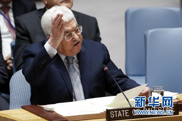 2月20日,在位于紐約的聯(lián)合國總部,巴勒斯坦總統(tǒng)阿巴斯在安理會審議巴勒斯坦問題公開會上發(fā)言。新華社記者李木子攝