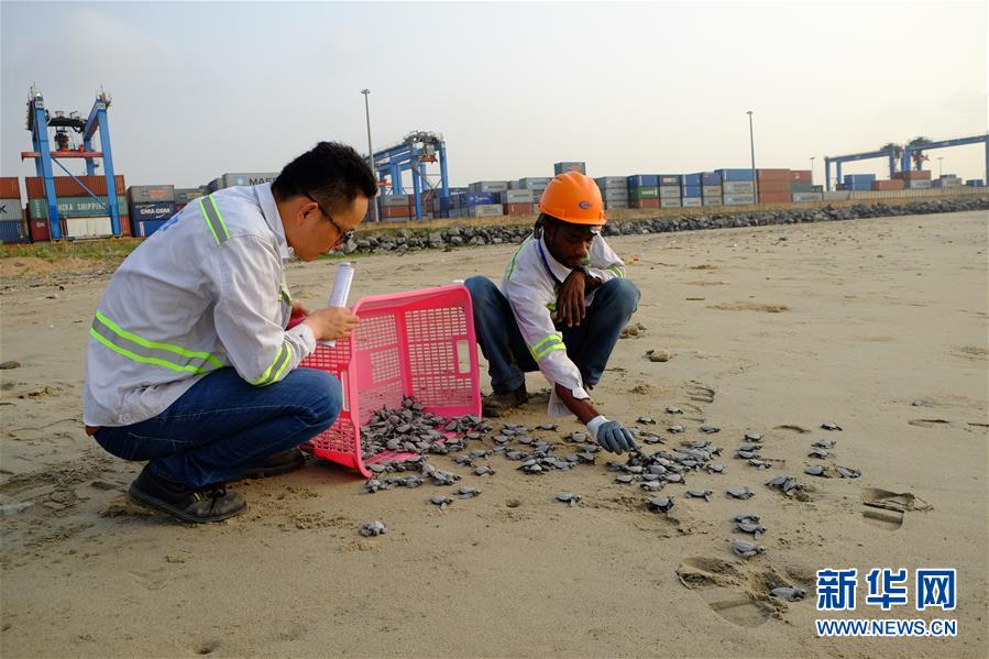 每年10月至次年3月是加納海域海龜?shù)漠a(chǎn)卵與孵化期,成年海龜會陸續(xù)來到海灘產(chǎn)卵,繁衍下一代。為了保障項目工程區(qū)域海龜正常產(chǎn)卵孵化,承建單位中國港灣工程有限責任公司(中國港灣)2017年11月建立了海龜孵化基地,將野生海龜在沿岸產(chǎn)的卵收集起來進行集中孵化,在小海龜孵化后放回大海。