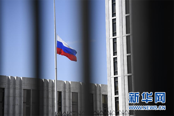 這是3月26日在美國首都華盛頓拍攝的俄羅斯駐美國大使館內(nèi)的俄羅斯國旗。新華社記者楊承霖?cái)z