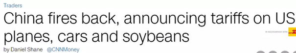 CNN發(fā)表題為《中國還擊,對美國進(jìn)口的飛機、汽車和大豆加征關(guān)稅》的文章。