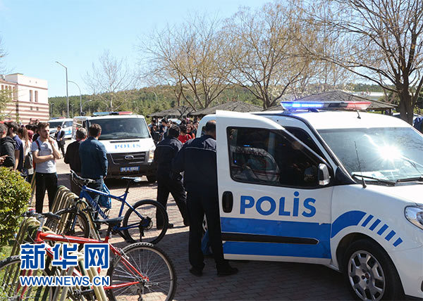4月5日,在土耳其埃斯基謝希爾,警方到達(dá)發(fā)生槍擊案的大學(xué)校園。新華社發(fā)