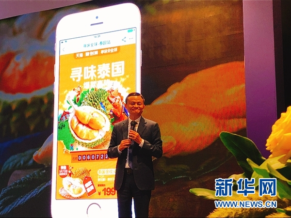 4月19日,阿里巴巴集團董事局主席馬云與泰國政府簽訂備忘錄,在泰國建設(shè)大型智慧物流樞紐,讓榴蓮等農(nóng)產(chǎn)品的出口朝著72小時送達加速。新華網(wǎng)發(fā) 陳家寶攝