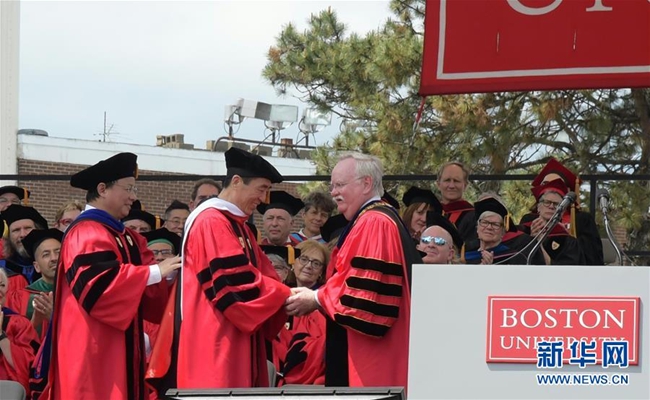 新華社美國(guó)波士頓5月20日電(記者徐劍梅)在美國(guó)波士頓大學(xué)20日舉行的2018屆畢業(yè)典禮上,中國(guó)導(dǎo)演張藝謀被授予波士頓大學(xué)人文藝術(shù)榮譽(yù)博士學(xué)位。